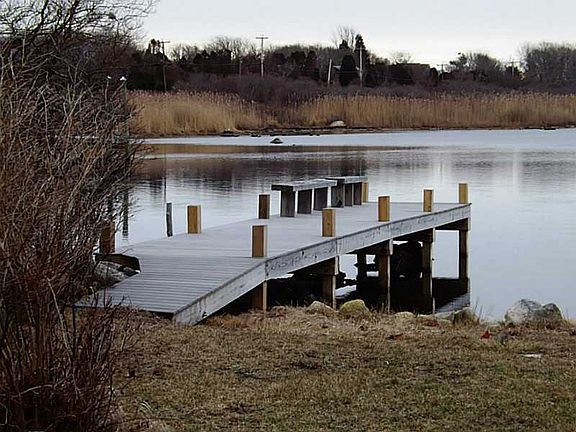 Open floor plan, light and airy waterfront home with wall of glass views on 2 floors overlooking Greenhill Pond + flowing to deck and balcony. Huge yard w/ dock, flexible 2 beds plus study/den, 2 woodburning FP's, cathedral ceilings, skylights, HWs