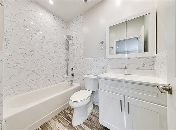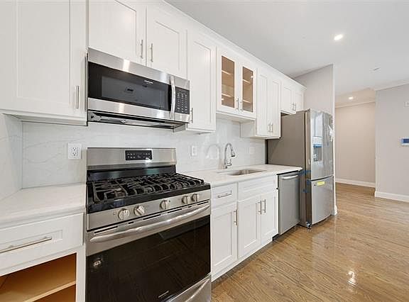 WASHER DRYER IN UNIT, PARKING AVAILABLE and SHARED ROOF DECK The Manhattan is an impeccably designed, brand new construction building in coveted Jersey City Heights. With 10 units and varied floor plans, each 2-bedroom, 2-bath home shares the quality, integrity and beauty. Overlooking Pershing Field, the excellent central location, and over 1, 600+ square foot shared roof deck are just a few reasons to love these luxurious homes. Inside, units are finished with classic crown molding, gleaming hardwood floors, bright bay windows, and recess lighting with pendant accents. Eat-in kitchens feature sparkling quartz countertops and matching backsplash, semi-custom white shaker soft close cabinets, Frigidaire Gallery series stainless steel appliances, and ample storage. Master bedroom boasts custom built-out walk-in closet, while bathrooms bring serenity and function with wood tile floors, porcelain white-marbled wall tile, handheld with rain shower heads, and oversized medicine cabinet storage. Settled on a tree-lined, park-front street in a vibrant corner of The Heights, The Manhattan is steps away offers easy access to Pershing Field with green space, baseball fields, swimming pool, ice-skating rink, the historic Reservoir, excellent schools, shopping & NYC access. 3D virtual tour available upon request.