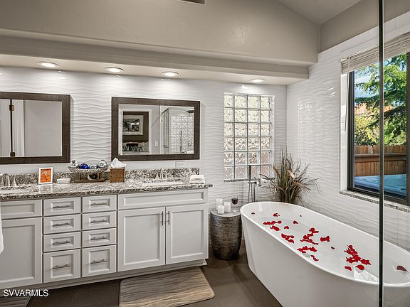 Top-performing vacation rental alert! Have it all with this spectacular, private, hill-top property overlooking all of Sedona's most famous red rocks! And yes, you are only a 5-minute walk to all of Sedona's best restaurants, activities, and shops! Completely remodeled and luxuriously appointed, this hilltop villa features 5 bedrooms, each with a red rock view, a chef's kitchen, two expansive covered patios with sweeping red rock views, vaulted tongue and groove ceiling, 3 car garage, and much more! (See upgrade list). This home is completely furnished, a proven track record ($850,000+ gross bookings Sept 2019 to 2024), & has turn-key management in place. Start renting day 1! This is your opportunity to own a Crown Jewel investment property in Sedona! See ''more'' for add info. PROPERTY HIGHLIGHTS:
