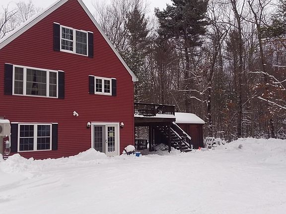 Beautiful, large three-to-four bedroom Cape on private 10.6 acre wooded lot abutting the recreational rail trail. Near center of town. First floor features a living room with brick fireplace, dining room, kitchen with granite countertops and stainless appliances, master bedroom, and full bath. Slider to large deck. The second floor has two large bedrooms and full bath. The finished basement is currently used as a business office with private entrance; perfect for home office too. House includes a wood stove insert, pellet stove and multiple mini-splits for A/C throughout the house. Two large sheds and large driveway for plenty of parking. Built in 2010. Title V in hand. Appliances stay. Septic system supports 4 bedrooms.