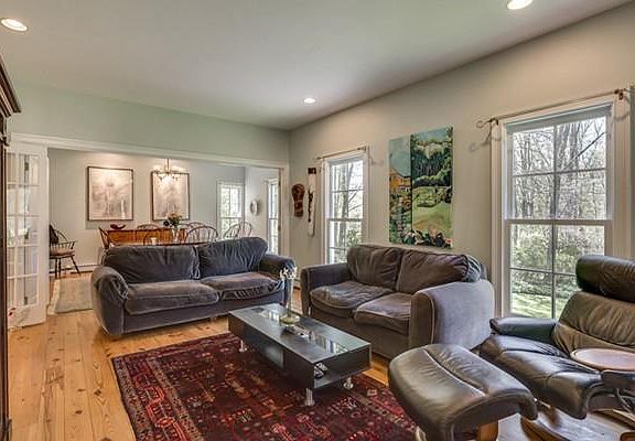 Charming classic Greek Revival style home magnificently sited on 4.25 acres of open level land thoughtfully framed by spectacular gardens, stonewalls and two charming barns built in the 1700's. The farmer's porch warmly welcomes guests to this charming 10 room home, built in 1999. Soaring 9 ft ceilings throughout the first floor, and oversized windows, fill each room with tremendous natural light. The large, well appointed kitchen opens to a tiered mahogany deck, overlooking the quiet back yard. In addition to the flower and vegetable gardens, enjoy the private patio set among the old stone walls and stone foundation. Some of the many special features include Georgia pine floors throughout the first and second floors, radiant heat in all bathrooms, high ceilings throughout, fireplace in family room, cathedral ceiling in master bedroom, a wonderful screened porch and a finished lower level with a fitness room, and a private in-home office area with exterior access.