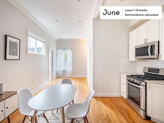 3 bedroom in East Boston on flexible lease terms. This 3 bedrooms / 2 bath apartment on the East Boston is available on a 12 month lease or a flexible short term (31 to 364 days) lease. You pick your custom start and end date. Monthly rent rate is determined by furnishing preference, move-in date and move-out date. Speak to a June representative for recommendations on the best stay duration for the lowest rate. Amenities of this home: Dishwasher, Furnished Common Areas, Wi-Fi - Paid separately (High-Speed), Guarantors Allowed, 32-inch Flat-Screen TV, Dine in kitchen, Street parking - City permit required, Laundry in home (free), Hardwood Flooring, Microwave, Oven, Refrigerator, Air Conditioning | HVAC, also, this unit is conveniently located, several local parks, restaurants and bars are just minutes away. About June Homes: Welcome to the easiest rental experience of your life. Rent furnished or unfurnished apartments on a 12 month lease or a flexible short term (31 to 364 days). As a resident, you'll have access to 24/7 support and monthly cleanings of the home's shared spaces. Sign up now to apply online for your next home with June. Brokers welcome! Contact us for more details. Use this listing ID when speaking to June team: #1519