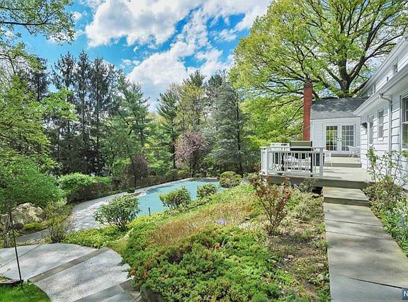 Priced to Sell: 14 room, 5 bedroom, 5.5 Bath large Elegant Tenafly East-Hill Colonial set high upon the hill at the end of a cul-de-sac on an acre. This center hall was gut renovated in 2021 and features beautiful open floor plan, new kitchen with stainless steel appliances (Subzero and Wolf) and new bathrooms, large rooms including, a separate family room, living room, library and 5th bedroom on 1st floor. Second floor has 4 bedrooms including a very large master suite with his and her walk-in closets and walk out terrace overlooking pool and property. Spa like master bathroom with separate toilet room and carrera gold marble counters and radiant heat floor. The large walk-out basement is finished with a kids playroom, gym, full pool bathroom and ground level access to backyard and pool. Exquisite grounds include Gunite pool, patios and deck, large lawn, and beautiful gardens close to worship, Smith School, and 8.5 miles to NYC.