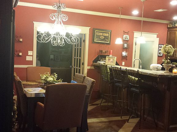 Custom built 4 BR 2 BA home has over 2,100 sq. ft., formal living room with gas fireplace & built ins or could be used as home office. Kitchen has SS appliances, concrete countertops, granite backsplash, breakfast bar, drop down lights, hardwood cabinets & pantry. Den has cathedral ceiling with barn doors. Large master bedroom has panned ceiling, huge walk in closet. Double vanity, garden tub & separate shower with barn doors in master bath. Concrete floors throughout. Covered patio & fenced backyard