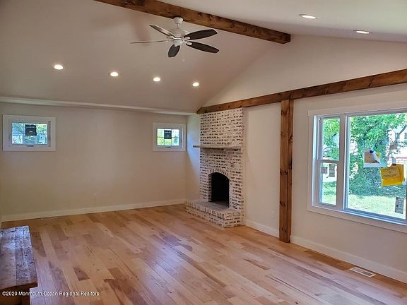 Welcome to this like BRAND NEW and absolutely gorgeous farmhouse meets beach inspired design .. gutted to the studs and rebuilt .. NEW everything: HVAC, electric, plumbing, windows, roof, siding, gutters, floors, bathrooms, kitchen. Light and airy open floor plan with vaulted beamed ceiling and wide plank Hickory hardwood floors thruout. Whitewash brick fireplace. White shaker all wood kitchen cabinets (soft close doors and drawers) with concrete counters, huge 2 inch thick butcher block island with antique wood cabinetry,beautiful spanish tile bs,full SS appliance package, open shelves, and enormous pantry with antique door. Barn door to full basement. Attached Garage. High hats thruout. Nice size property with beautiful landscaping. New deck in rear. Very unique upscale custom features