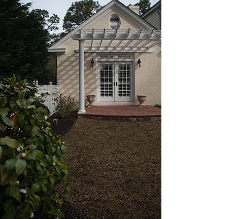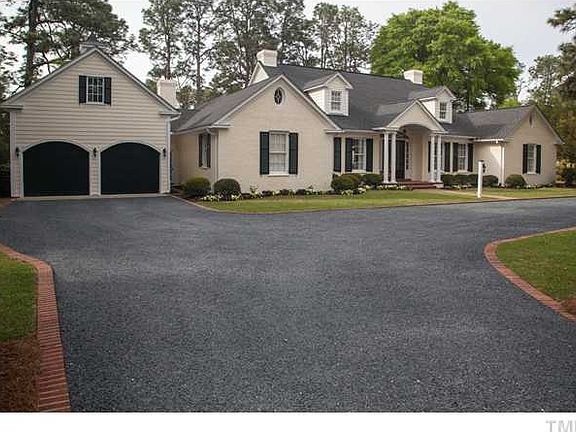 Rare Golf Front Opportunity on Championship Pinehurst Number 2 with expansive vistas of multiple holes. This custom residence exhibits distinctive architecture finely crafted and designed with attention to detail inside and out. Perfect for entertaining the living areas are connected by the flow of arches and doors that spill onto patio with in-ground pool surrounded with white picket fence and stunning views of the golf course. Foyer flanked by executive office and formal living with fireplace and bar. Gourmet kitchen boasts granite countertops, island with seating and stainless appliances. The impressive main level master suite includes French doors to patio and pool, cathedral ceilings, walk in closets, separate sinks, steam shower and soaking tub. Private second bedroom with bath on