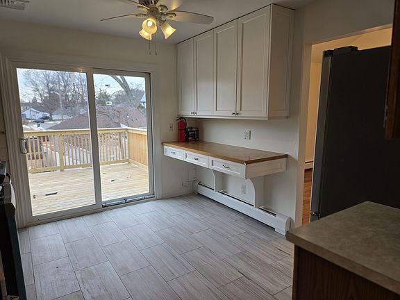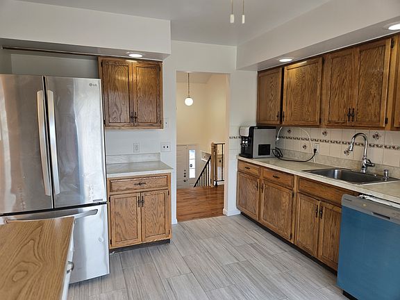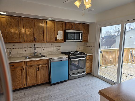 Beautifully maintained home! Entertain in the spacious, sun-filled living and dining areas, complemented by a private kitchen leading to a gorgeous deck overlooking the oversized backyard. Relax in the primary suite with a private full bath, and two additional bedrooms with a freshly updated hall bathroom. The finished basement boasts a rec room and versatile walkout bedroom with a full bath perfect for guests or extended family! Laundry room and attached 2-car garage.Located on a desirable, quiet street. 1+ years Tenant pays 1 month RE fee