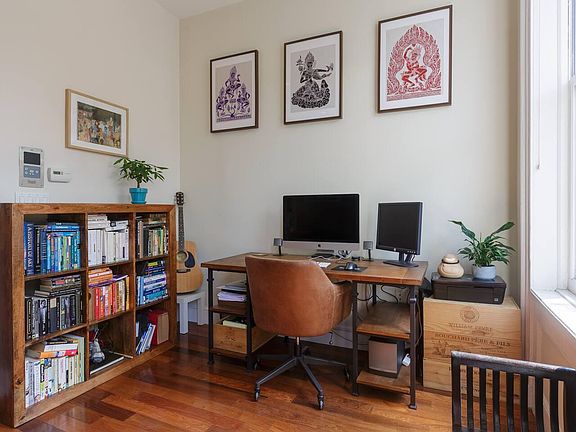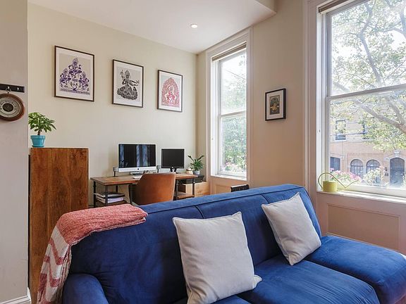 Gorgeous sun-drenched two bedroom apartment in the heart of Paulus Hook -- Jersey City's most desirable neighborhood. Open plan kitchen, with exposed brick, wood floors, and 10 foot ceilings throughout. Home office ready -- set up in the bright and spacious living room alcove, or convert the second bedroom. Only 2 other apartments in this historic building, which features a large shared backyard with lawn, pergola, terrace and bbq for outdoor recreation. Nest thermostat control for central heating and air conditioning. Free washer/dryer in building and generous basement storage available. Minutes away from PATH trains (Exchange Place and Grove Street) and Manhattan ferry (Paulus Hook stop). Pets considered on a case by case basis. NO BROKER FEE. Available from May 1, 2025. Owner pays water and washer/drier, renter pays electricity, internet, and gas heating. No smoking home.