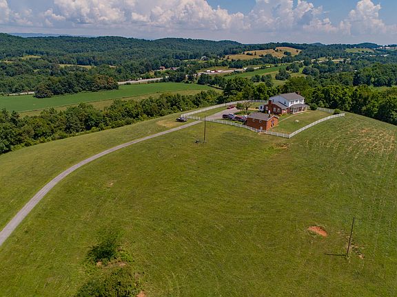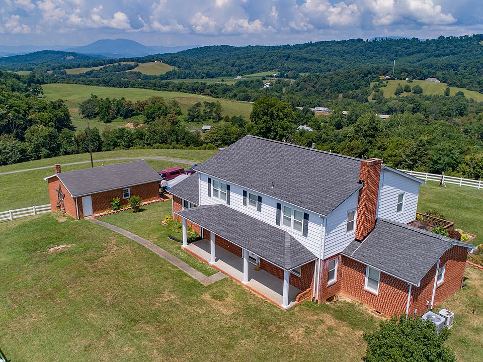 Recently appraised at $431,000!! Spectacular Views all the way to the Roanoke Valley. View of 5 counties from this sturdy, hilltop castle. Picturesque sunrises and sunsets; touch the stars! Morning coffee on the front porch facing sunrise views. Spacious, light-filled home with rooms for a growing family; your home-based business; or your alpaca farm, horse farm, cattle farm. Bold stream crosses along the northern border. Current perimeter fencing is woven wire with a strand of barbed wire. Attractive 3-board, white fence surrounds the house and gardens. Detached 2-car garage has workshop space. Tons of storage in the clean, dry basement -- as well as workshop space.