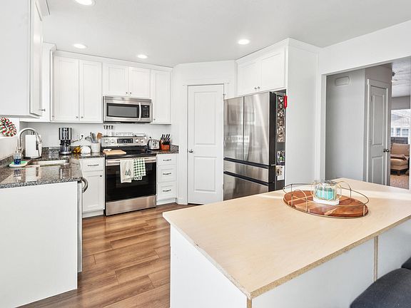 This is a Fantastic newer Townhome that has many upgrades! Newer paint in living room and hallways. Granite counters. Seller is putting a granite counter top on the island that will be installed soon. Upgraded Laminate Flooring with high quality carpet! Washer and dryer included. The fridge is excluded but the fridge downstairs will stay. Very spacious bedrooms and closet space! Unfinished basement to add to the lovely home. Studded, insulated, with electrical in so basement is really easy to finish to add another 2 bedrooms and 1 bathroom in the basement. 2 Parking spaces. 1 Covered and 1 uncovered. Playground, grass, picnic area, Gazebo right out the back door for fun with the kids and family! Very clean and affordable beautiful Townhome.