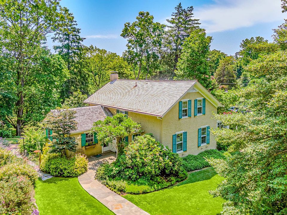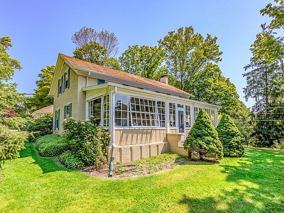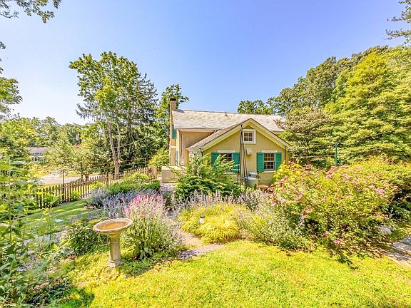 Named "Lester House" after its original owners who built it around 1865, this charming Shelter Island home is perched on a slight hill on one acre in "Eeltown," one of the island's earliest established areas. Owned by multi-generations of the Lester family through 1916, this well-maintained traditional home is described in archives as a "five bay, center entrance house with six over six windows located at the turn in the road." The Shelter Island Reporter highlighted its unique feature: "the only circular staircase on Shelter Island." This distinctive mahogany staircase is a true work of art, with intricate needlework depicting island life in the late 1800s. In 1972, a former owner remarked that he "fell in love with it and bought [the house] in 15 minutes." The home's open and airy layout allows sunlight to brighten nearly every corner throughout the day. The living room, just off the entry foyer, features a welcoming fireplace framed by windows. The southerly facing, 300sf sunroom (not included in the total square footage) serves as a natural gathering spot with a dining area on one end and lounges on the other, creating a cheerful setting for both plants and people. On the opposite side of the entry foyer, a guest room currently used as a library offers easy access to the first-floor full bath with washer/dryer. The kitchen is a quintessential country kitchen, with an efficient layout, windows on three sides, handsome cabinetry, equipped with a Thermador range and external exhaust, double ovens, and both heat-resistant and marble pastry counter. The second floor includes two bedrooms on the west side, a full bathroom along the hallway, and a larger bedroom on the east side, each with its own unique charm. The grounds feature meandering paths leading to various highlights, including a 798 sf patio with a barbecue area, an elaborate outdoor shower, a shady spot with glimpses of the harbor for hammocking or meditation, and a carriage house with 370 sf bedroom and full bath. Historical records note that the "foundation and cellar walls are fieldstone laid up with lime and cow hair mortar. In 2011, the basement was expanded with block foundation. The house is wood construction throughout, except for the stucco covering of outside walls, added in 1905. Located near Coecles Harbor, this enchanting home has been lovingly cared for, with many recent renovations, including raised ceiling heights, windows, cedar roof and stonework. The total square footage includes the carriage house residence. A home inspection from July 2024 is available for prospective buyers. This historic and charming home is ready to be yours to have and to hold.