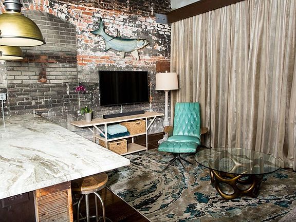 Luxury, ultra-custom 1 bed/1 bath unit in a 4-unit building in downtown Asheville. The apartment has gorgeous furniture, exposed brick walls, custom upholstery, a locally made king-size mattress, vintage kitchenware, and loft ceilings. Smart TV, cable, privacy windows, central heating & air, bathtub. Access to on-site laundry. Great location with easy access to highways, groceries, dining, and adventuring. Walking distance to parks. Credit check and full background check required. Month-to-month lease. Credit check and background check required. $200 utilities.