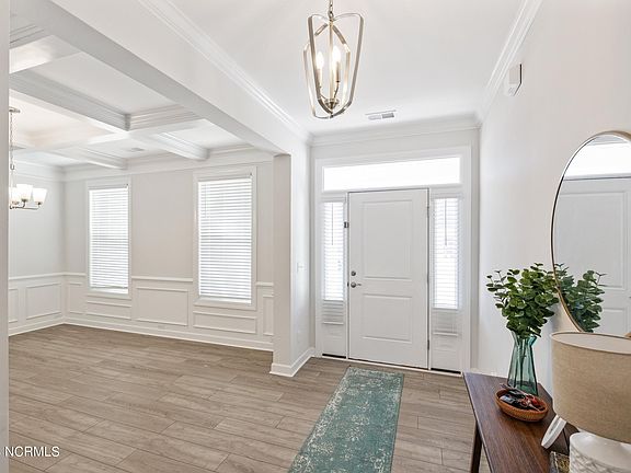 Sellers offering $7500 in closing costs with an acceptable offer! Come see this beautiful and spacious 5 bedroom, 4.5 bath home in the neighborhood of Songbird Landing, conveniently located adjacent to Kiwanis Park. This like new home was built in 2020 and offers a bright and open floor plan, over 3,500 square feet, and a coastal exterior featuring a charming second-story porch. At the center of the home, you will find a gorgeous kitchen with an extra large island, walk-in double-door pantry, all complemented by stone gray full-overlay cabinets, frosty carina quartz countertops, modern tile backsplash, and stainless appliances to create the kitchen of your dreams! This home is full of high-end finishes including a gorgeous coffered ceiling in the foyer and dining room and LVP flooring extended throughout the first floor. The stylish master suite features an elegant tray ceiling, large his/hers closets, a tiled walk-in shower, a separate soaking tub, and comfort height dual vanity with white cabinets & raw concrete quartz counters with access to the second-story front porch. Within quick driving distance to restaurants, shopping, and Wrightsville/Topsail beaches. Book your private showing today!