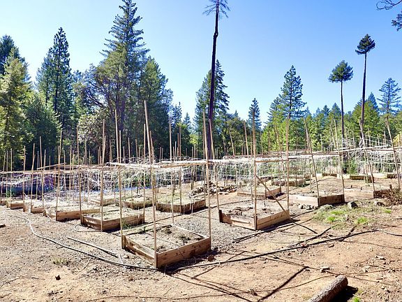 This circa 1980's Cabin on 1.97 acres is ready to be called 'home'. Several outbuildings and repurposed box trucks give ample dry storage space. There's a 1Bd/1Ba cabin of humble appearances, but outfitted with all one needs to stay dry, safe and productive in the mountains in Trinity Pines year around. Recent updates include a solar system with batteries, wood stove, refrigerator, water heater feeding a sink and a step-in soaking tub. An operable washer and dryer sit in their own annex within the 2-car-bay garage structure now used as a wood stove heated workshop. A 20ft cargo container will stay with the land. North Star Ct offers end of the road privacy with few other passing neighbors, so dust wont be an issue. There's a new (2019) permitted well of 260ft deep, with solar pump, producing 15 gallons per minute. Ample water, linked to a 2,000g water tank and an intricate irrigation system = major success. Get started by taking a tour today, Spring is readily approaching!