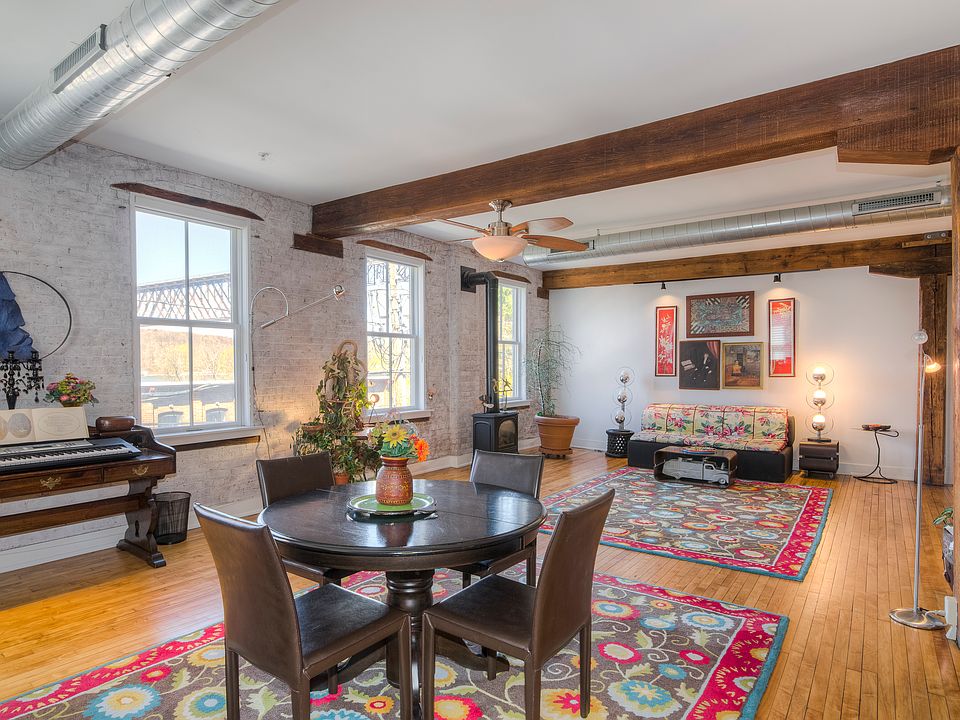 Rare opportunity to own a stunning 1 bedroom unit that faces Hudson River with fantastic views- mint condition, hardwood floors-13' ceilings-exposed brick & beam walls-security system for entry-elevator-Stunning open concept design except for private large bedroom. You can walk to train & great restaurants. This would even be a great weekend get-a-way for a NYC person who loves the river and eating out!