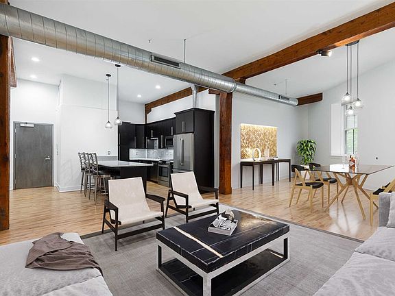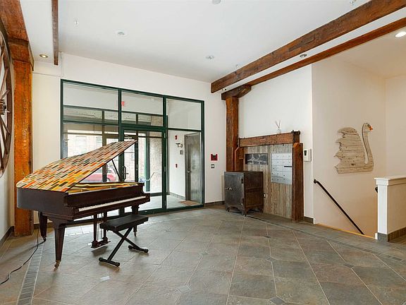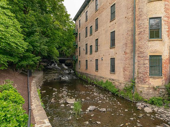 80 N Water Street gives you the opportunity to own a one-of-a-kind piece of Poughkeepsie History. Originally an 1880s piano factory, the building still has all the eye-catching industrial features. This is the only unit in the building with soaring 13-foot ceilings, and large windows with remote-controlled blinds and beautifully restored original steel shutters. The original wood support beams and exposed brick add even more character. Nothing was overlooked when it came to top-of-the-line features: all new Bosh high-end appliances in the kitchen, Italian Glass Backsplash, Quartz Counter Tops, and ample storage in the kitchen cabinets with pullouts and soft close; Birds-Eye Maple floors sanded and stained to natural wood; Bedroom with two large walk-in closets and plenty of natural light. Enjoy views of the waterfall of Fall Creek River. Walking distance to the Poughkeepsie Metro North Station