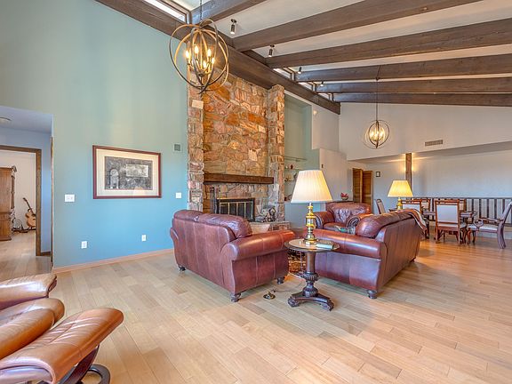 - Beamed Ceilings, Ceiling Fan(s), Central Vacuum, Solid Surface Counters, Eat-in Kitchen, Liv/Din Combo, Live on One Level, Master On Main, Raised Ceilings 9+ft