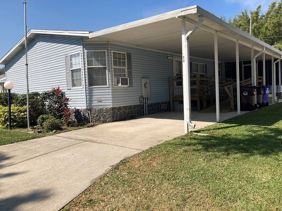 Ready to Move In? This home is Huge! Very well main-tained home, with many upgrades! This 3 bedroom + bonus room & 2 full baths, features an open floor plan. This home backs up to a wooded lot, so no neighbors behind you. The bedrooms are large and plenty of closet space. Laundry room is a nice size with storage with plenty of space. 2 covered parking spaces with a ramp for wheelchair access. Large windows for natural light, covered porch/lanai screened in for sipping on morning coffee. This home is located in a highly desired 55+ community, next to the Saint Cloud Lakefront, the hosts a marina, lake, restaurants and walking trails.