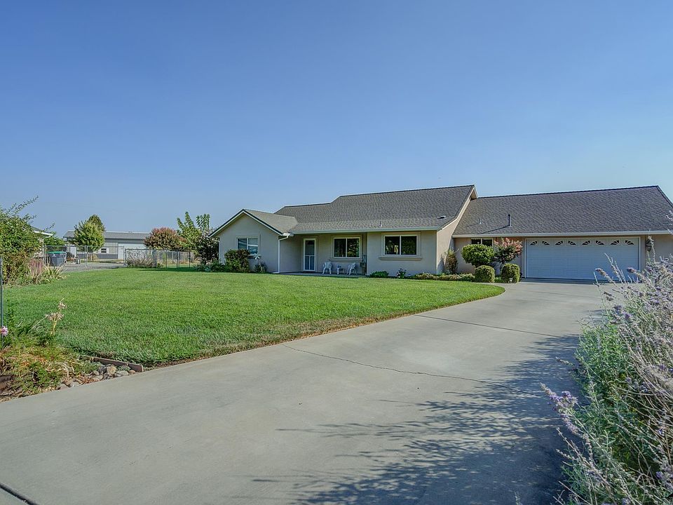 This wonderful custom Antelope home is truly a rare find! Located at the end of a cul-de-sac where you won't lack peace and quiet! With 4 bedrooms, 2 bathrooms, an open concept split floor plan, formal dining and a beautiful one acre yard, there is ample space for entertaining and room for the whole family! Inside, the open great room features a custom brick gas fireplace, vaulted ceilings and oversized windows. The kitchen has been tastefully updated with newer appliances - all INCLUDED in the sale! New refrigerator, a microwave/convection oven, dishwasher and a 5 burner gas range for the cook! The washer & gas dryer is also INCLUDED! You won't be disappointed by the storage in this home! With an oversized pantry with room for an extra refrigerator, loads of cabinet space in the laundry room and an extra shop/garage bay located on the back of the attached two car garage, there's plenty of room for hobbies and storage! Seller has thought of all the details with a central vacuum in both the house and garages! Outside you will find beautiful landscape and a fully fenced yard! The covered back patio is the perfect place to enjoy your morning coffee or evening BBQ's with plumbed natural gas. A hot tub pad is in place and wired for your future hot tub and a koi pond with water feature creates ambiance. A storage shed, room to garden, established apricot, peach, plum and cherry trees round out this property. Located in an excellent school district and surrounded by other custom homes. You don't want to miss this one owner home at 80 Nirvana Court!!!