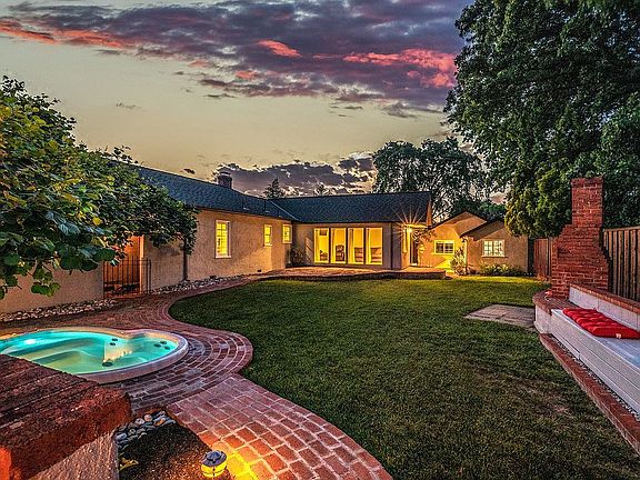 Country-style living in Walnut Creek’s coveted Carriage Square neighborhood offers an ultra-private, almost half-acre level lot and a beautifully maintained and updated home. Within a mile of the Countrywood Shopping Center, about two miles to BART and freeway access, and within a mile to K-12 schools, the property is centrally located to everything you need, but you may never want to leave. Extensive gardens, mature trees, and multiple illuminated outdoor venues for play and entertaining wrap around the single-level home. About 1,900 square feet of living space features refinished hardwood floors, crown molding, new dual pane Simonton windows throughout the three bedrooms and two bathrooms, living room, updated kitchen with granite counters and GE Profile appliances, dining room, and a family room with a vaulted ceiling and backyard access. The master bedroom has a walk-in closet with organizers, a niche outfitted with a desk, and an en suite bathroom with a travertine tile floor, marble topped single-sink vanity and an oversized shower with a frameless glass enclosure and body jets. A large basement is ideal for a wine cellar and additional storage. A new detached two-car garage with epoxy flooring has extra space for a workshop, home gym, or storage. Pull down a ladder to access the attic space. Consider adding an apartment with a private entry over the garage. Bordered by redwood trees, the long driveway creates a grand entry and offers space for off-street parking, including room for RV or boat parking. The landscape bursts with seasonal color and produce from the mature rose garden, the citrus, avocado, and apple trees, and a Kiwi vine in addition to spectacular Magnolias, Birches, October Sky Maples, flowering cherry and Crepe Myrtles. Enjoy the expansive brick patios, outdoor wood-burning fireplace, a new in-ground hot tub, gas fire pit, pergola, bocce ball court, and a sprawling lawn. Dream big and envision an income-producing ADU or guesthouse with a private driveway, a pool, spa, and outdoor kitchen. Appreciate the attention to detail and the addition of a new well pump system for irrigation, a new roof, fresh exterior paint, and new HVAC and ductwork. An alarm system with security cameras has also been recently installed. A laundry room has access to the backyard.