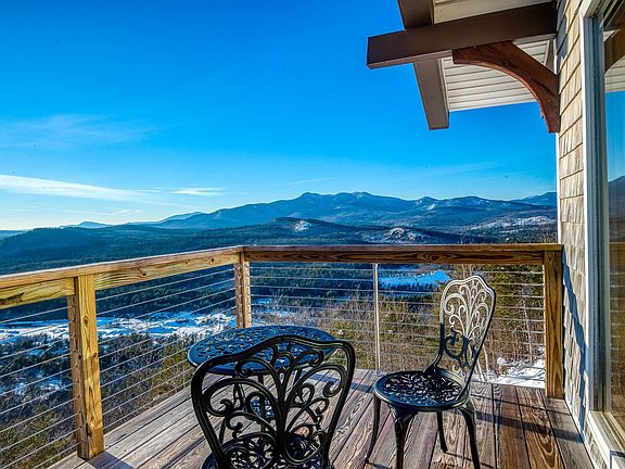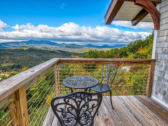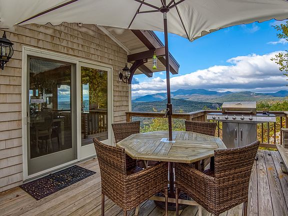 Welcome to Kailasa - The Chalet in the Clouds! Perched atop Oak Ridge Road in the desirable lake access Eidelweiss neighborhood of Madison, this striking multi-level retreat commands breathtaking, 270 degree panoramic views of New Hampshire’s White Mountains. Expansive bay windows, a slider onto the deck, and dual picture windows on the main level flood this home with natural light while framing spectacular mountain vistas from the kitchen, dining area, living room, and custom bar—perfectly complementing the home’s rustic mountain charm while providing powerful and profound scenery in all four seasons. Downstairs there are four bedrooms including an oversized primary bedroom suite, three of which have impressive views of their own. Recently featured in Vogue and Boston Uncovered, this property has received an array of updates in recent years including a new metal roof, heating and cooling system, renovated kitchen, bathrooms, electrical and plumbing. Located in the heart of ski country, North Conway is a mere 15 minute drive and is sure to keep you and all of your guests busy with some of the finest skiing, fly fishing, rock climbing and mountain biking in the Northeast. Impeccably maintained, tastefully furnished, and move-in ready, this exceptional property invites you to relax, recharge, and soak in the views at 80 Oak Ridge Road. OPEN HOUSES SATURDAY 01/03 AND SUNDAY 01/04 BOTH NOON TO 3PM.
