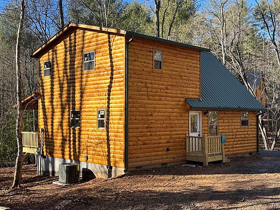 Murphy, NC! Fiber Optic Internet - Brand New - Just Completed - Custom 2Bed / 2Bath Rustic Mountain Chalet Style Home Nestled in a tranquil wooded setting, This Home includes Metal Roof, Log Siding, and a Full Covered back porch where you can enjoy the fresh mountain air. Inside, you'll find a large open great room with cathedral ceilings, Large Open Loft that includes a second Master Bedroom & Bathroom, The home will also include beautiful oak flooring throughout. Stay warm and cozy by the stack stone gas log fireplace with gas logs included. Home will include Custom Hickory Cabinetry made by Local Cabinet Maker and Granite Counter Tops in Kitchen & Bathrooms, seller is giving Kitchen Appliance Allowance of $1400 with contract. Woodcrest offers underground utilities and high-speed fiber optic internet, Plus, it's conveniently located just a short distance from the US Forest Service and Lake Hiawassee, making it a dream come true for outdoor enthusiasts who love hiking, fishing, and boating. Say goodbye to endless property searches, and say hello to your new dream home. The seller is asking Now $299,900. for this beautiful brand new home. Don't miss out!