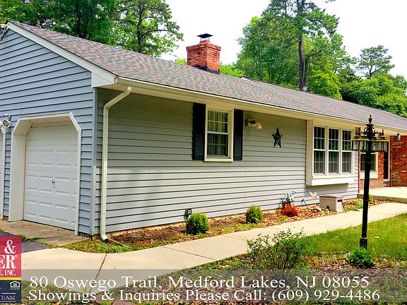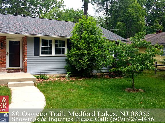 This 1715 square foot single family home has 3 bedrooms and 2.0 bathrooms. This home is located at 80 Oswego Trl, Medford Lakes, NJ 08055.