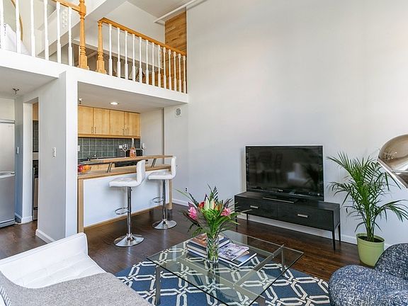 The Historic Schoolhouse is the setting for this updated, one bedroom loft with parking, 14 foot ceilings, elevator and state of the art lobby. This condo has a newer designer kitchen with wooden cabinets, butcher block counter top, breakfast bar and stainless steel appliances. Additionally there is, newly finished espresso hard wood floors, modern floating stairs, ceramic tile bath, an abundance of closet space and 2 storage spaces, there is a sleeping loft and home office or sitting area, 10' windows provide an abundance of natural light. Building features brand new lobby, Butterfly intercom system and convenient laundry room. All this located just minutes to shopping, quaint pubs, fine dining and PATH and Bus to NYC.