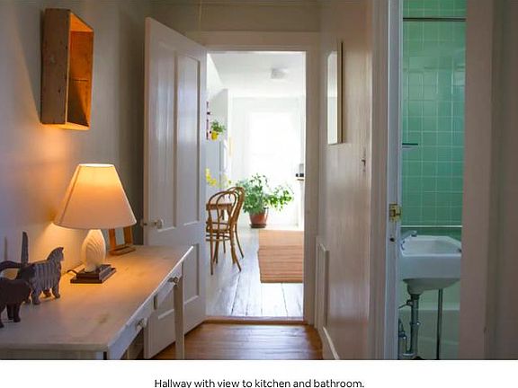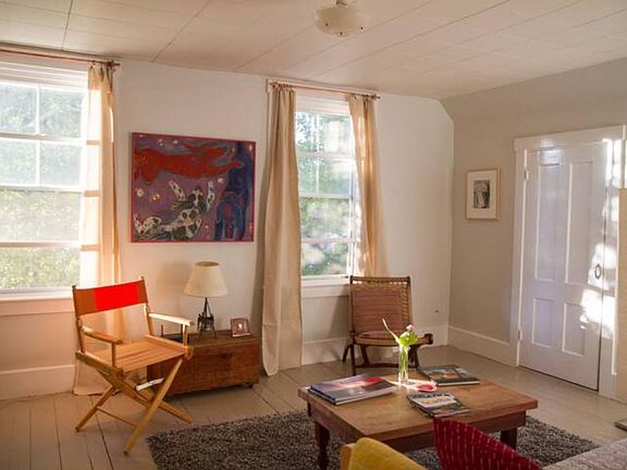 This is a furnished apartment. Walk to town in 15 minutes from this sunny, stylish apartment. This peaceful location has a lovely backyard with Ferns, Lupines, and wildflowers. The apartment has wood floors, plenty of sunlight, and a good flow with a washer & dryer. The apartment is up one flight of stairs on the top floor of an 1880 farmhouse. You can walk to town. Because it is an old house, sound travels from the upstairs and downstairs apartments. No smoking. Pets will be considered. This is a furnished apartment. One-year lease. Or possibly a winter month lease. No smoking. Pets will be considered. Parking in the driveway off the street. Rent includes wifi, and water, and does not include electricity. Heat and air conditioning are in the unit with heat pumps.