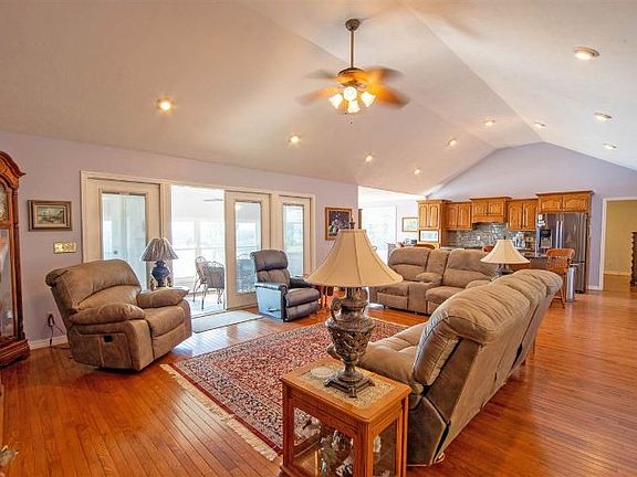 Enjoy this Spectacular view of the Tennessee River! Immaculate 3 bedroom, 2 bath home all on 1 level. Large family room with gas fireplace, open kitchen with new granite counters, back splash and Kitchen-Aid appliances, spacious master bedroom with river view, you will love sitting out in the new sunroom with double hung Pella windows. You have a 2 car garage with an additional 2.5 car garage shop. All of this sits on approx. 4.19+ - acres, over 500' of river frontage.