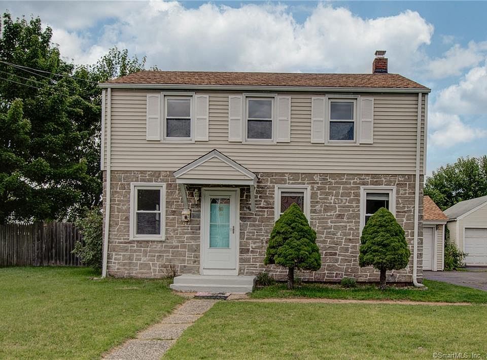 Come check out this new listing in Plainville! This freshly painted 3 BR Colonial offers hardwood flooring, granite kitchen counter top, front to back living room with a semi open concept! Lower level has a heated partially finished rec room. New gas water heater in 2020. Roof is approx. 4yrs. Natural gas heat & central air to keep you cool in the summer months. You're going to love the privacy of the back yard which is completely fenced in! Relax and enjoy the hot tub on the brick patio, then toast some marshmallows around the fire pit The detached garage is a bonus! Single driveway, it is not shared. Boundary line is about the middle of the this driveway and the neighbors driveway. You can see where the boundary line is where the grass on the right of garage ends, as you face the garage. Call to see this today!