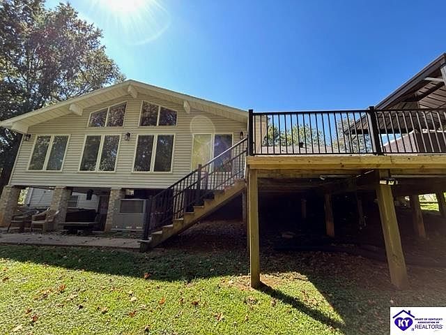 House on 3.03 acres. Fenced back yard. 3 bedrooms, 2.5 bathrooms. Large great room with cathedral ceilings. Newly remodeled kitchen. All stainless-steel appliances. Double ovens. Fireplace with sitting room. Newly remodeled master bath and hall bath. Basement has two bedrooms, full bath and Livingroom. Utility room. There is an outside patio area. New deck is two years old with a gazebo. There's a 30 x 40 shop and a 12 x 36 lofted storage building. Property is 10 minutes away from two different boat landings.