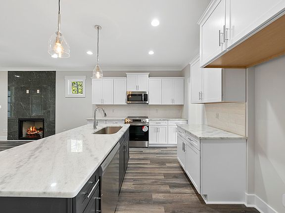 This charming 1.5 story home boasts three bedrooms and three bathrooms. The bright and airy open floor plan is perfect for entertaining guests, with LVP flooring in the main areas, a cozy family room with fireplace, and a modern kitchen with prep island, marble countertops, tile backsplash, and stainless steel appliances. The main level also features a dining room with vaulted ceiling, a convenient laundry area, and access to a spacious screened porch. Additional highlights include a second-floor bonus room and full bathroom, and a two-car garage.