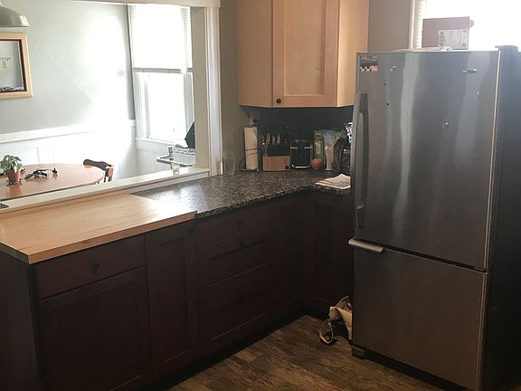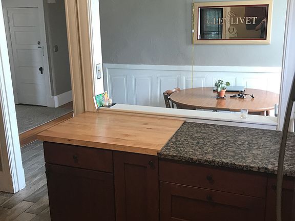 2 bedroom 1 bath 2nd floor apartment across from St. Thomas church. Some updates including stainless steel fridge, tile kitchen floor. Backyard with patio. Heat and hot water included. Driveway parking including additional off street parking. Bathroom picture is not current due to remodeling. First and last months rent required plus security deposit.