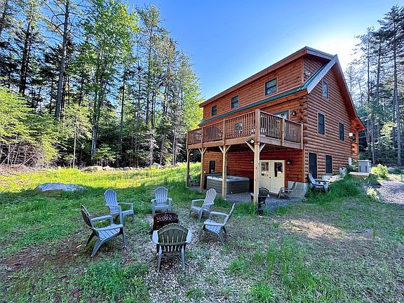 Feel at home in this charming log home nestled in a private section of Bethlehem, completed in the fall of 2021. This residence combines the classic coziness of log homes with modern comforts like air conditioning, a hot tub, and stainless steel appliances. The home spans three levels, with the main level featuring a queen bedroom, a bathroom, a laundry room, and an open-concept kitchen, dining, and living area. Enjoy the fresh air on the deck overlooking the surrounding woods, or make use of the grill. Upstairs, you'll find two additional bedrooms with queen beds and an open loft with two bunk beds. The lower level offers a queen bed and a twin-twin bunk bed with an ensuite bath. Designed with you in mind, this home offers a modern open-concept living area with a gas fireplace and a flat-screen TV with a surround sound bar. The kitchen is fully equipped with stainless steel appliances and granite countertops, making it a great choice for your White Mountains vacation. An outdoor fire pit adds to the charm, providing a perfect spot for relaxation. Enjoy exclusive local perks with discounted tickets to the world-famous Cog Railway and pool and gym passes at the Mountain View Grand Resort and Spa. The home is pet-friendly with a fee of $100 per pet per stay. Parking is available for up to six vehicles. Located in Bethlehem, a beautiful Northern New England gem, this home is a stone's throw from all major White Mountains attractions. With its central location, you're close to several ski resorts, including Bretton Woods and Cannon Mountain, both just 20 minutes away. Explore world-class hikes, Santa's Village, Storyland, Mount Washington, and the Cog Rail. The quaint town of Bethlehem offers great restaurants and a wonderful downtown full of New England charm. Check-in is any time after 4 PM and check-out is at 11 AM. Unauthorized early arrivals or late checkouts are subject to a $100 per hour fee. Quiet hours are from 10 PM to 8 AM, and a $100 fee may be imposed for violations. Unauthorized pets or guests are subject to a $300 fee and immediate termination of your stay with no refunds. No smoking inside the unit, with a $250 fee for violations. The property is in bear country, so no trash or food is to be left outside at any time, with a $100 fee for violations. Some homes are equipped with exterior cameras for security purposes. The home offers Wi-Fi and cable TV, ensuring you stay connected during your stay.