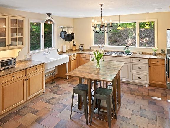 This is a unique and absolutely charming property! Enter through the wisteria-covered portico and antique gate to a private and PEACEFUL SANCTUARY complete with your own scenic pond! This home has been recently and stylishly updated to perfection. One-floor living like no other..a perfect blend of rustic and contemporary style combined with outdoor villa living will truly enchant you. Just re-designed master suite with brand new bath & walk-in closet, 2 other bedrooms, a lovely sunny study and another peaceful "reading room" (previously a play room) can work well for any number of activities.But the kitchen/recently-added dining room area will make you totally fall in love with this home! And the large family room is perfect for entertaining friends & family.. Many high-end additional renovations include radiant heated floors, walk-in shower w/stone tiles, air-jetted tub, high-efficiency HVAC, roof, electrical, windows etc. Detached 3-stall barn. Only minutes to shopping and highway!