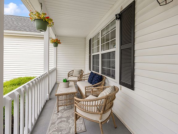 Welcome to 80 Pond Place, discover this move-in-ready ranch in the peaceful Riverbend community. Ideal for first-time buyers or those looking to downsize without sacrificing comfort and style. Enjoy the quiet neighborhood with walking paths for family outings. Relax on the charming front porch, then step into the bright open floor plan and vaulted ceilings. The living and dining areas flow seamlessly into the kitchen, making it easy to entertain family and friends. A cozy fireplace adds warmth to the dining space, while the kitchen features light-filled cabinets, generous counter space, and an island for casual meals. Sliding doors lead to a private deck, great for outdoor dining. The primary bedroom offers a walk-in closet and private bath with double sinks. Two additional bedrooms, a full bath with a tub, and a convenient laundry area are all on the main level. The full walk-out basement is ready for your personal touch: create a home gym, office, additional living space while still have room for plenty of storage. The fenced in backyard is perfect for pets, gardening, or weekend picnics. A two-car attached garage makes this home complete. Located close to highways, shopping, schools, and scenic trails. Whether you're starting out or simplifying your life, 80 Pond Place has everything you need.