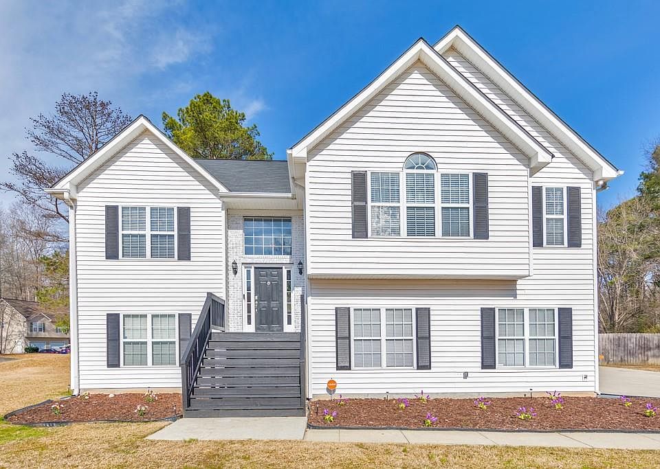 Welcome to this beautiful 4-bedroom, 3-bathroom home situated on a 0.66-acre corner lot in the desirable Pooles Bend community of Hiram. As you arrive, you'll be greeted by a large front yard leading to a charming entryway. Step inside to a fireside family room with soaring vaulted ceilings, creating an inviting and open atmosphere. The well-appointed kitchen features stone countertops, stainless steel appliances, a breakfast bar, and a cozy breakfast nook—perfect for casual dining. A separate dining room offers additional space for entertaining. The oversized main-level primary suite boasts vaulted ceilings and an ensuite bathroom with his and hers vanities, a soaking tub, and a separate shower. Two generously sized secondary bedrooms share a full bathroom, and a convenient laundry room is also located on the main level. Downstairs, a large bonus room with walk-out backyard access provides endless possibilities—ideal for a media room, home office, or gym. This level also includes a full bathroom and a private bedroom, perfect for guests or multigenerational living. Outdoor living is exceptional with a spacious deck off the main level, a lower-level patio, and a massive fenced-in backyard—ideal for pets, play, or entertaining. A 3-car garage offers ample parking and storage space while the new furnace ensures peace of mind. With no HOA, you have the freedom to make this home truly your own. Schedule your showing today!