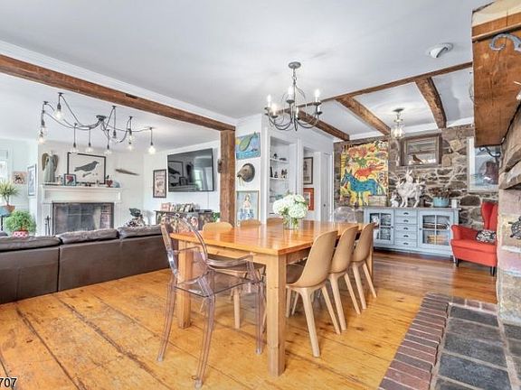 Updated Vintage Style Colonial, with additional cottage pool house, featuring inground pool, hot tub, outdoor shower, spacious patio, koi ponds, gardens, and a tennis court on a beautiful 6-acre oasis. This unique compound includes an updated kitchen w granite countertop, heated floor, wolf range and 1 2 bath access in kitchen. The inviting living space highlights wide planked hardwood floors throughout home, exposed beams, fieldstone walls, new windows, fireplaces in both the dining and family rooms, butler's pantry, and 2 sets of staircases. Updated Master Bedroom includes woodstove and deck with access to patio. Updated Master Bath boasts a claw tub and separate shower. Central air in both main home and pool house cottage. Laundry on second floor. The attic in the main house has a cedar planked closet. Cottage pool house includes great studio style kitchen living area with 2 large separate living areas and full bath. Home Warranty included.