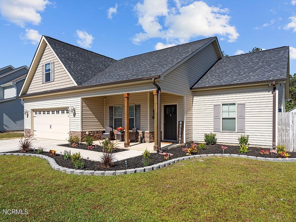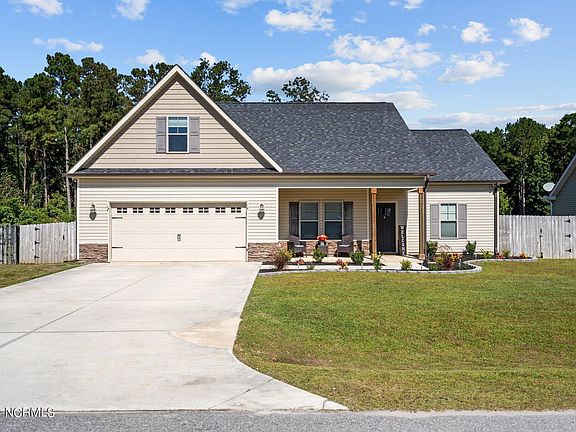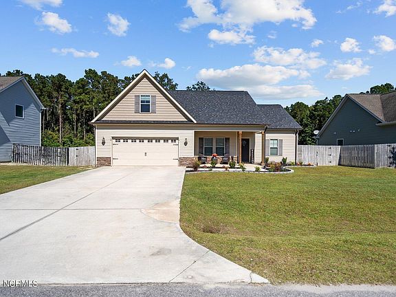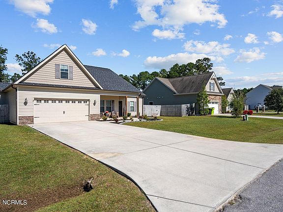 This is Your Home!!! No HOA and the Subdivision is Well Kept!! 3 Bedrooms w/ 2 Bonus Rooms, 3 Full Bath Home in Desirable Hampstead. This Home Features Upgrades and has been Well Maintained! You are first Greeted with an Epoxy Covered Front Porch! Enter and you will find Gorgeous LVP Floors, Carpet installed 10/2024, HVAC Updated 2022, Dining Room with Picture Framing Trim Work that leads to your Wide Open Kitchen that is Open to Your Beautiful Family Room that Boasts the Perfect Gas Log Fireplace! The Split Floor Plan gives you Privacy Boasting a Fabulous Master Bedroom with an En Suite that features a dual Vanity, Separate Soaking Tub, Walk in Shower and Large Walk-in Closet. On the other side of the house you'll find Two more Generous Sized Bedrooms with Ample Closets, a Full Bath, and a Spacious Mud Room/Laundry Room with Storage that leads to Your Two Car Garage. Upstairs is the Cherry on Top!!! It has not stopped done Wow-ing You Yet! Upstairs you'll find Two Huge Bonus Rooms, One Which Features a Closet and a Full Bathroom!!! Make Your Appointment Now!!