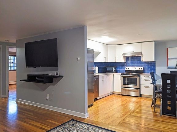 This 2 bedroom apartment has been updated recently with a new kitchen and bath. The living dining area has access to a balcony. The hardwood floors have also been renewed. Two decent size bedrooms. On the second floor and complex includes an in-ground swimming pool and super convenient to the commuter rail.