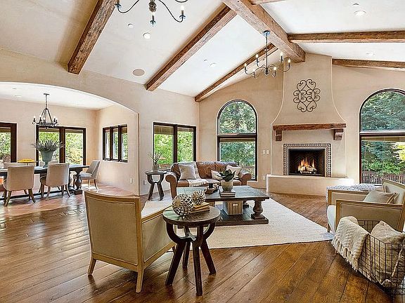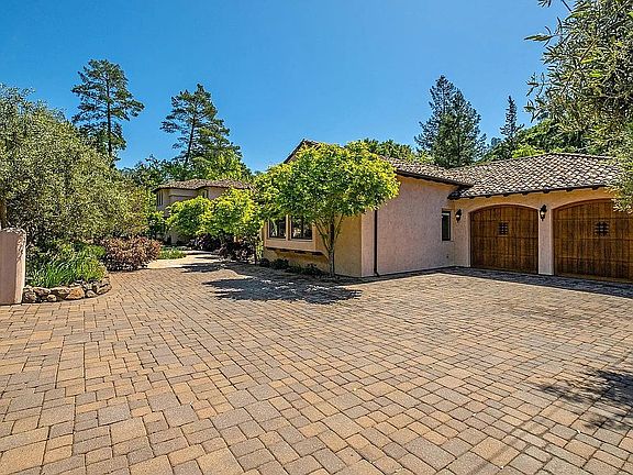 Custom built & completed in 2011 this Spanish Hacienda Style Home offers 5 bedrooms, including two primary suites, plus an office on a flat .50 acre with a pool. This home boasts exceptional craftsmanship & timeless style with a strong modern vibe. Some of the many features include hand plastered walls & finished hardwood floors that include french bleeding, triple glazed windows, solar power (owned) plus two batteries in the garage. You will find custom finishes throughout the chef's kitchen including two refrigerators, a Wolf range - hood and farmhouse sink with ample counter space. The exterior offers a covered patio dining area & tiled veranda to enhance outdoor California living among the mature gardens & pool side.
