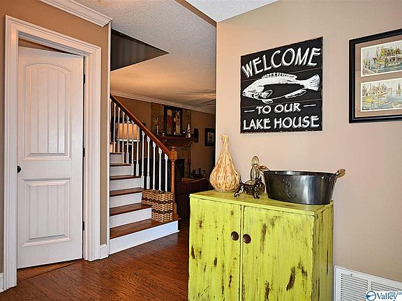 No matter if you live here part time or permanently you will feel like you are on Vacation yr round!. Let the very affordable HOA ( $550/qtr ) take the hassle out of lake living as your dues cover your lawn maint., tree removal, garbage , sewer, termite bond, tennis, swimming and clubhouse..Also your siding and roof replacement is the Asso. responsibility! This well maintained property has had many updates to accompany the 4 bdrms and 2.5 ba. Great views of the beautiful main channel of Lake Guntersville.