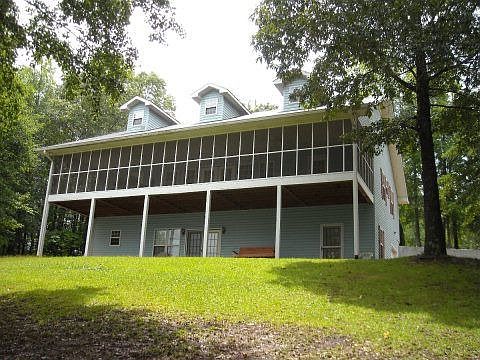 238.39 feet of shoreline.Gorgeous views and gently sloped lot. Split bedroom ranch home with hardwood floors on the main level. Kitchen and dining are great for entertaining, or entertain on the oversized screened porch which extends the length of the home. Your terrace level is set up with two addtitional bedrooms, a kitchen, interior storage area and garage. A concrete drive takes you to the lower level. There is a concrete deck that runs the lenght of the home.
