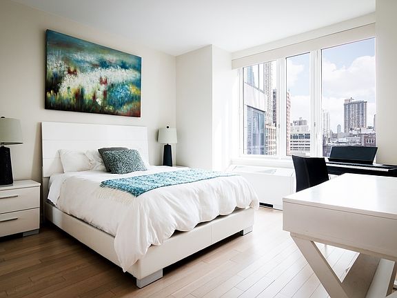 Blu Real Estate is excited to present Residence 12A; cozy 2-bedroom 2 bath which offers a spacious layout with eastern views, high ceilings and beautiful bleached oak wood flooring. The kitchen optimizes a sleek lacquered modern design with professional grade appliances, including Viking range, Subzero refrigerator, and Miele dishwasher with stainless steel fronts. Generous closet space throughout, a washer/dryer, marble bathrooms and both bedrooms equipped with electronic shades. Apartment comes with 2 storage bins. Built in 2008, the Rushmore pampers residents with its state-of-the art amenities and elegant design. Located conveniently at 64th Street and Riverside Boulevard, The Rushmore is a full-service condominium with an attentive staff including 24-hour doorman, concierge, and offers hotel-like amenities including Fitness Center and swimming pool by LaPalestra Wellness Center, Entertaining Suite with catering capabilities, Private theatre, game room, Indoor playground designed by Kidville, billiards room, sundeck and parking garage. Unique to the Rushmore, both the east and west sides of the property look across greenery. To the west, the building enjoys forever views across Riverside Park South, the Hudson River Greenway, and the Hudson River. Limitless recreational opportunities surround you such as children's playgrounds, waterfront bike and jogging paths, and picnic and sporting areas. The Rushmore is also walking distance from New York's leading cultural institutions and some of the city's most coveted attractions such as Lincoln Center, Columbus Circle, the Met and Central Park.