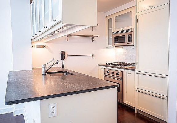 NO FEE, by owner. Beautiful 2 bedroom 2 bathroom unit in dark brown natural hardwood floors throughout, open gourmet kitchen, beautiful granite countertops, top of the line Viking, Miele & Sub Zero kitchen appliances, generous closet space, in unit washer/dryer, marble bathroom with Waterworks fixtures, and garden facing exposure The Rushmore is one of the most sought out locations on the Upper West Side and is a full service luxury condominium offers the height of elegant living surrounded by water and parks. The building offers a resort-like amenities including 24 hour doorman, concierge desk, party room, lounge, cinema room, courtyard area, Childrens room by Kidville, a billiards room, state of art fitness center by American Leisure equipped with a full lap pool, steam room, and state of the art equipment. Great location, adjacent to Lincoln Center, Columbus Circle, Shopping, Grocery, Restaurants, & Riverside Park!