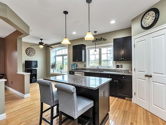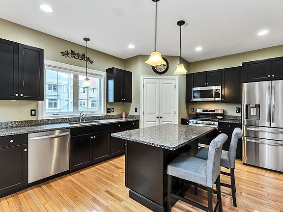 Riverwalk Place in Manchester, NH is an upscale, pristine, gated community that offers fabulous water views of the Merrimack River, along with walking and running trails that any outdoor enthusiast would love. This updated, 3 story end unit with a 2-car garage has all your wish list items. Upon entering the lower-level mudroom area you will find a large, finished room that has endless list of possibilities from a guest bedroom, office, gym, media room and the list goes on. The second floor features open concept, hardwood flooring, custom kitchen with SS appliances, granite, walk-in pantry and gas cooking. You will also love the water views from the kitchen windows. The huge family room has a gorgeous stone gas fireplace and access to your private back patio surrounded by mature landscaping and your own private garden. If you love to grill and entertain you will never leave your back yard.