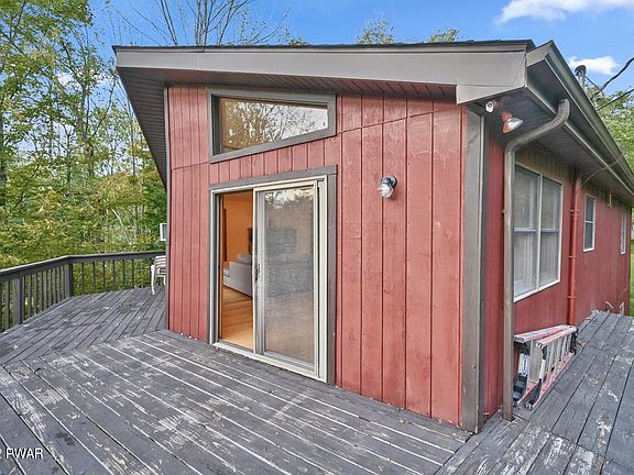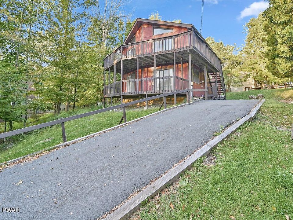 Tucked among the trees, with seasonal water views. This 4 BR, 2 BA Prow front home features an open floor plan, skylights, cathedral ceilings,stone fireplace, breakfast bar and finished lower level with a wood burning stove and a paved driveway. Wrap around deck. Plenty of room for entertaining and enjoying time with family and friends ! All this in the amenity rich, gold star community of the Hideout ! Located in The Northern Poconos, just over two hours from the NYC and Philadelphia Areas., Beds Description: 2+BedL, Beds Description: 2+BED 2nd, Baths: 1 Bath Level 1, Baths: 1 Bath Level 2, Eating Area: Dining Area, Sewer: WS Comm Central