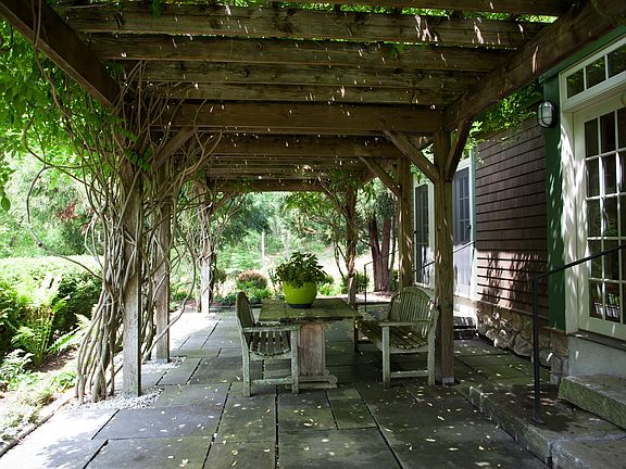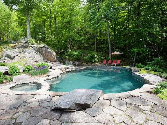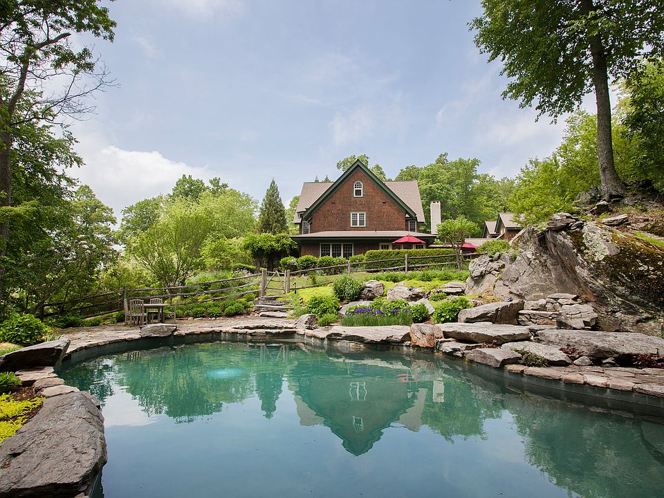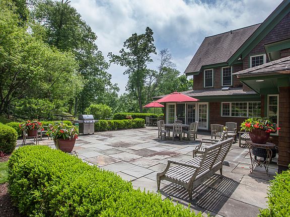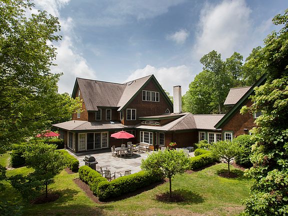 Available for June, July and/or August 2017 @ $21,000 per month. This grand Shingle-Style home is perfectly situated on 14+ acres. The views and privacy are extraordinary. The inspired design has been executed with fine craftsmanship, high quality materials and architectural details. The living room features a stone fireplace, beamed ceiling, columns and French doors opening to a bluestone terrace with a wisteria covered pergola. The formal dining room has a double height barrel ceiling and fireplace. The kitchen is equipped marble counters, copper farmer's sink, and 2 Miele dishwashers, Sub-Zero refrigerator and freezer, Wolf rangetop, 2 wall ovens, and warming drawer. The large pantry has room for an office. The kitchen opens to the gathering room with adjoining wet bar. Plus a Butler's pantry with sink. The east wing features a media/game room or guest quarters. It has extensive built-in bookcases, wet bar, beamed ceiling and full bath. On the second level are 3 bedrooms with en suite baths. The master bedroom features a walk-in closet and luxurious bath with a whirlpool soaking tub and separate shower. The laundry room is located on this level. On the third level are two bedrooms and a full bath. The Barn has recently been transformed into a gym and cedar-lined Russian sauna, with wood-burning heat as well as a cold water "plunge" shower. The 14+ acres are beautifully landscaped with perennial gardens, natural rock outcroppings, specimen plantings and a heated free-form Gunite pool with spa. The 3-car garage is heated.