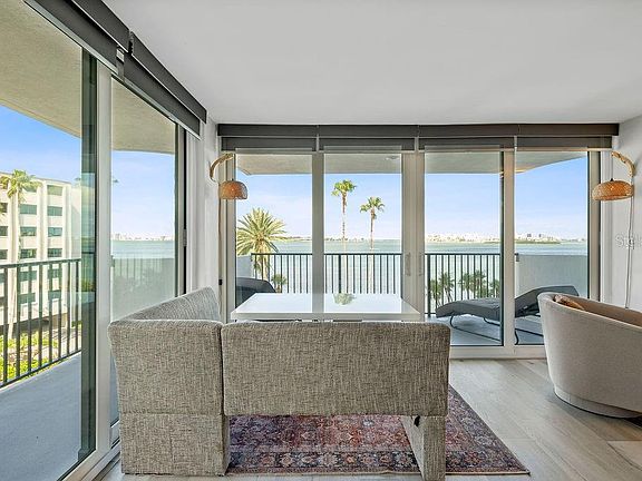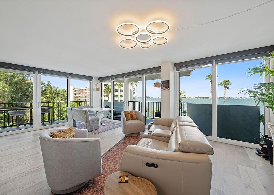 **MILLION-DOLLAR VIEWS AT PRELUDE 80 - **WATERFRONT LIVING** Welcome to Prelude 80, an exclusive and highly desirable condominium community in the heart of Clearwater. This exceptional corner unit features over $120,000 in recent upgrades! Among the enhancements are floor-to-ceiling hurricane-impact windows and doors, a fully renovated kitchen, updated flooring throughout, upgraded lighting and ceiling fans, a new NuvoH2O water softener system, modern faucets, and fresh interior paint. Inside, you're immediately welcomed by an open-concept living and dining area flooded with natural light. The expansive glass windows frame the sweeping views of Clearwater harbor and the intracoastal waters. As a corner unit, the home boasts a large wraparound balcony—an ideal setting for sipping your morning coffee or enjoying the dramatic daily sunsets. The updated kitchen is both functional and refined, featuring solid-surface countertops, stainless steel appliances, a breakfast bar, and sleek, contemporary cabinetry. The home features a desirable split-bedroom floor plan for added privacy. The bright and airy primary suite offers a walk-in closet and a spa-style bathroom designed for relaxation, while the second suite includes its own full bath and walk-in closet—perfect for guests or flexible use. The property includes one assigned covered parking spot (#45) with ample guest parking available on the waterside. An external storage unit (#43) provides added convenience, and shared laundry facilities are located just steps away on the same floor. Life at Prelude 80 means enjoying a true resort lifestyle. Residents have access to a heated waterfront pool with expansive water views, a well-equipped fitness center, a clubhouse with full kitchen, a media room with a library and pool table, BBQ grills, a shaded gazebo and a dedicated bike room. The building offers secured access with a private lobby, and Best of all, all special assessments have already been paid in full—allowing you to move in with confidence and ease. There is also an option for this property to be fully furnished (Turnkey). This premier location is just one block from the Pinellas Trail and within easy walking or biking distance to Clearwater Beach, local restaurants, grocery stores, and downtown attractions. You're also just minutes from Coachman Park and The Sound Amphitheater, a quick drive to the charming town of Dunedin, and only 40 minutes to Tampa International Airport. From daily dolphin sightings to peaceful evenings watching the sun dip below the horizon, this residence delivers a waterfront lifestyle that’s truly unmatched. Schedule your private showing today and experience the luxury and tranquility of life at Prelude 80.